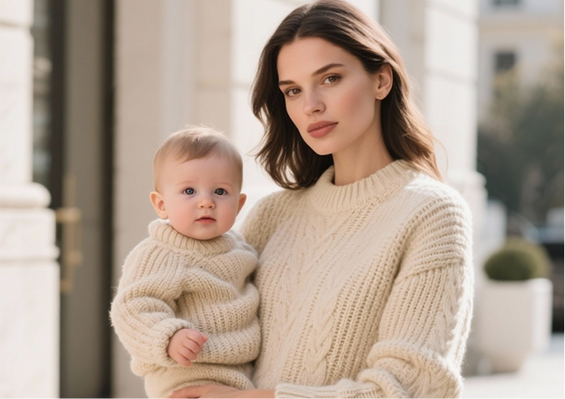 Thoughtfully designed cuts and premium materials embrace your silhouette, giving you a natural sense of comfort and confidence. Paired with matching outfits for your child, you’ll both look effortlessly beautiful together.Here, the focus is particularly on materials of natural origin.