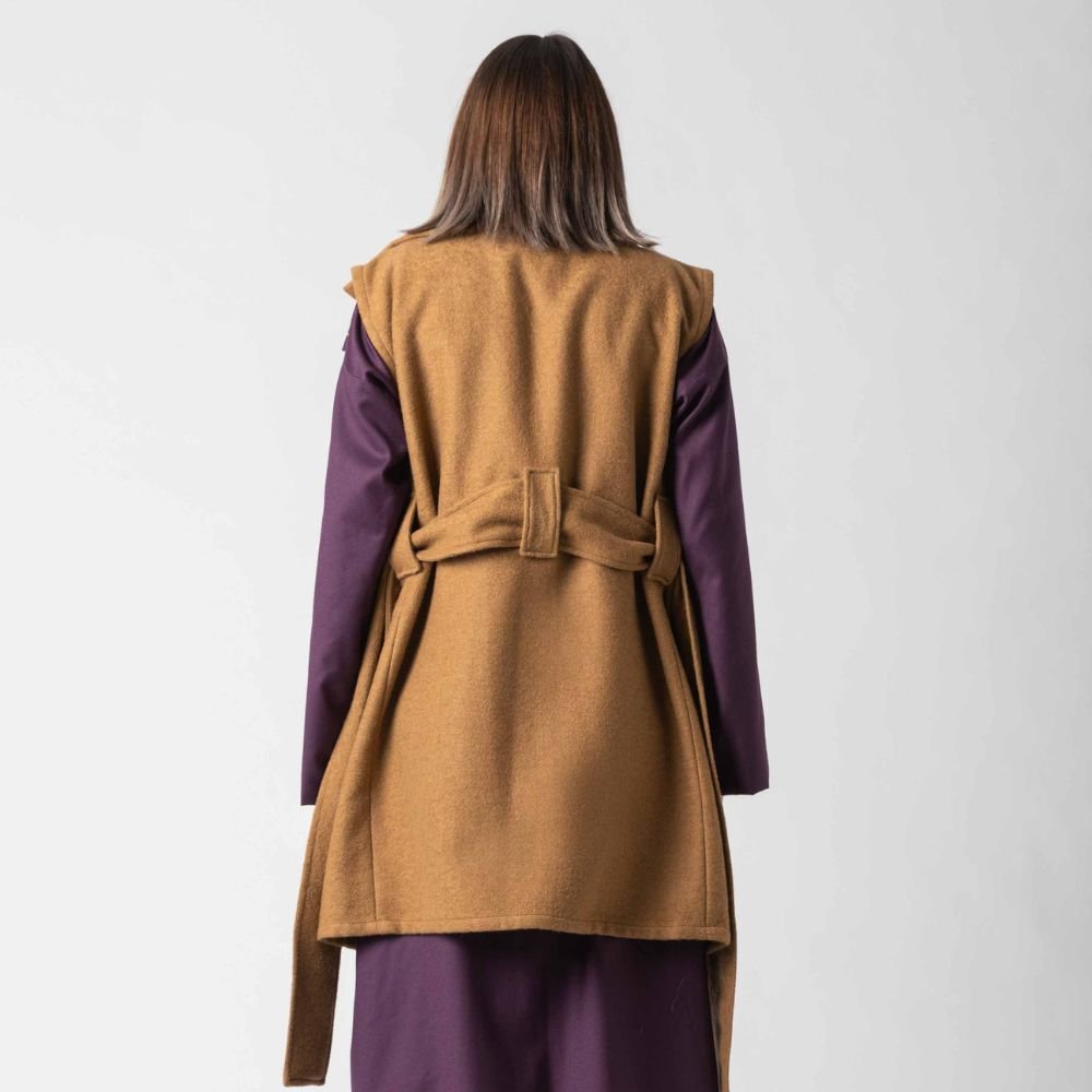 Diese Midilänge-Weste aus Wollmischung ist ein zeitloses und geschlechtsneutrales Kleidungsstück. Hergestellt in Italien aus hochwertigen Materialien, wurde sie mithilfe der charakteristischen Zero-Waste-Technik entwickelt – einer Spezialität von ZEROBARRACENTO.