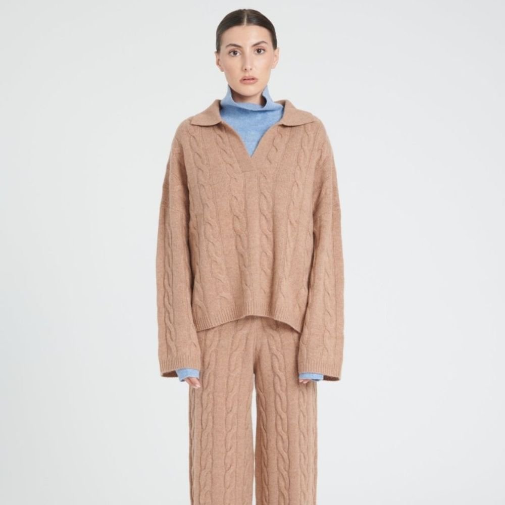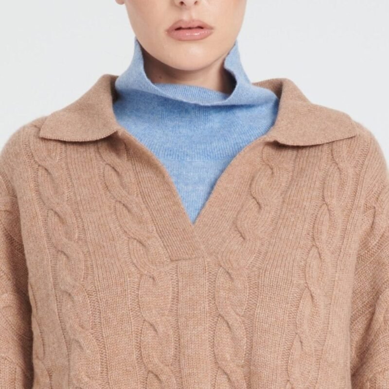 Damen-Poloshirt aus 6-fädigem Kaschmir in Camel – ZAYA 5