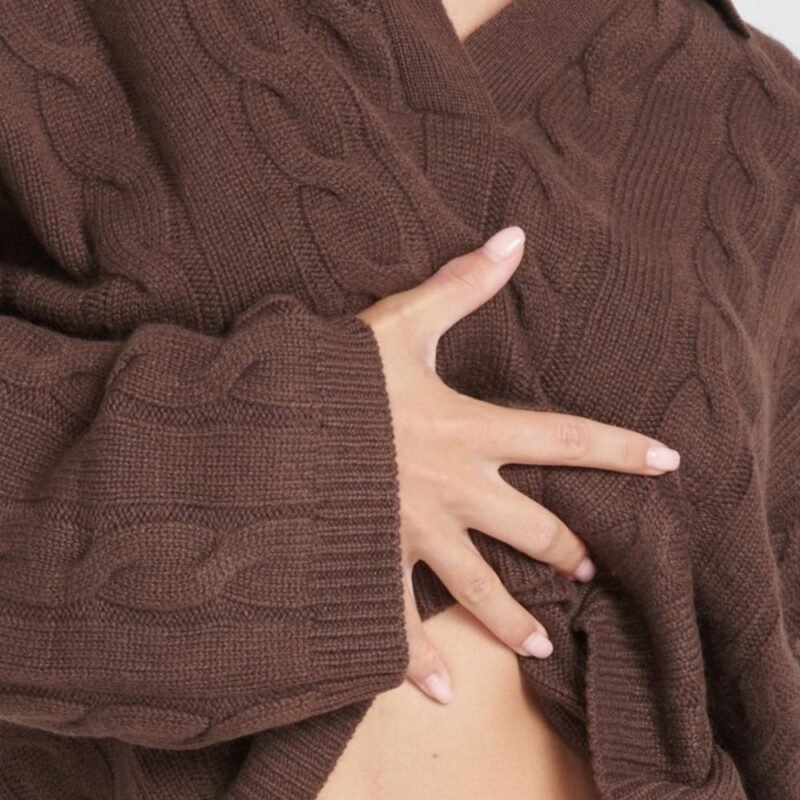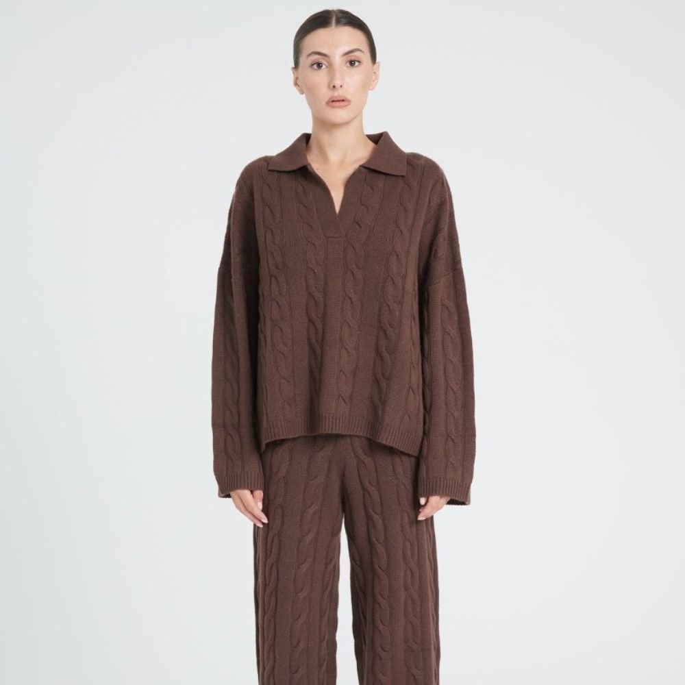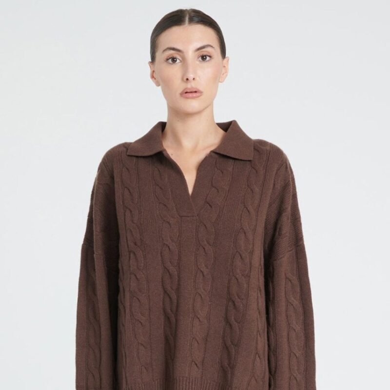 Damen-Poloshirt aus 6-fädigem Kaschmir mit langen Ärmeln in Braun – ZAYA 5