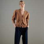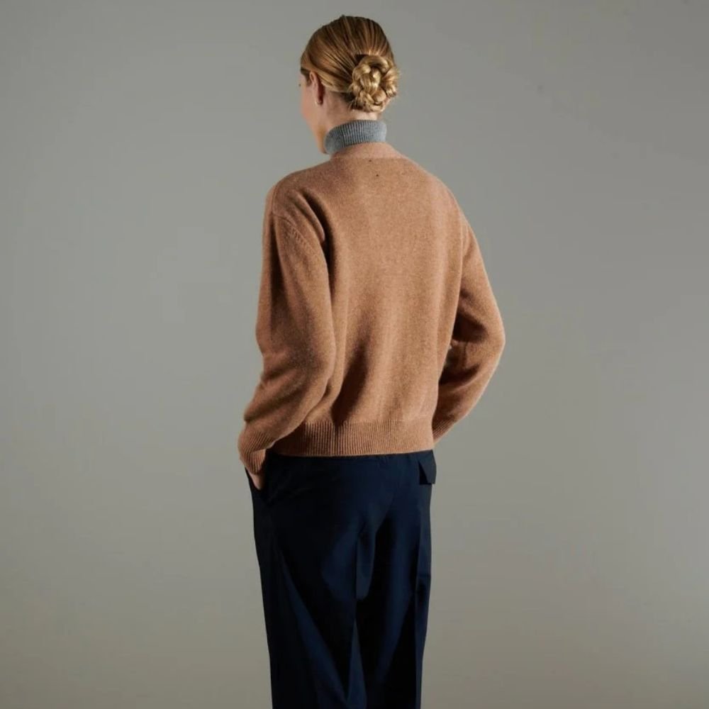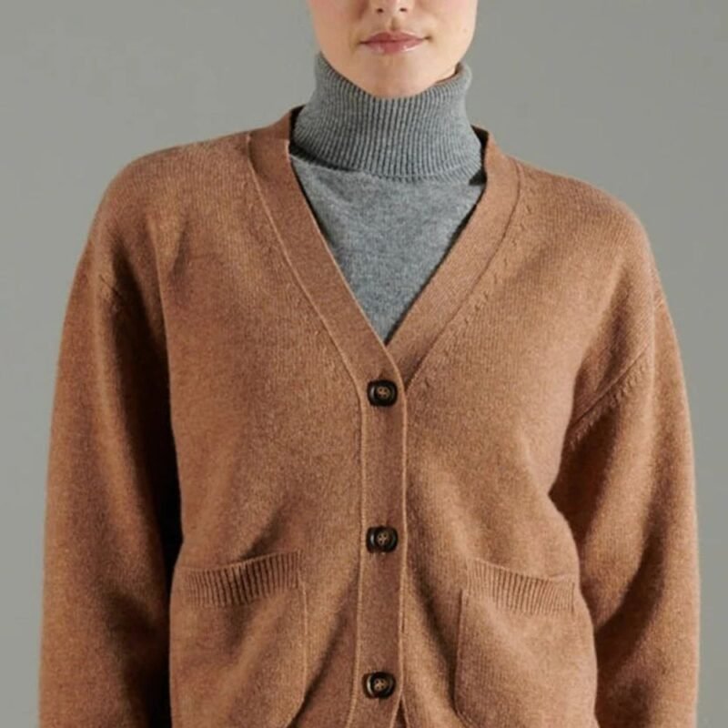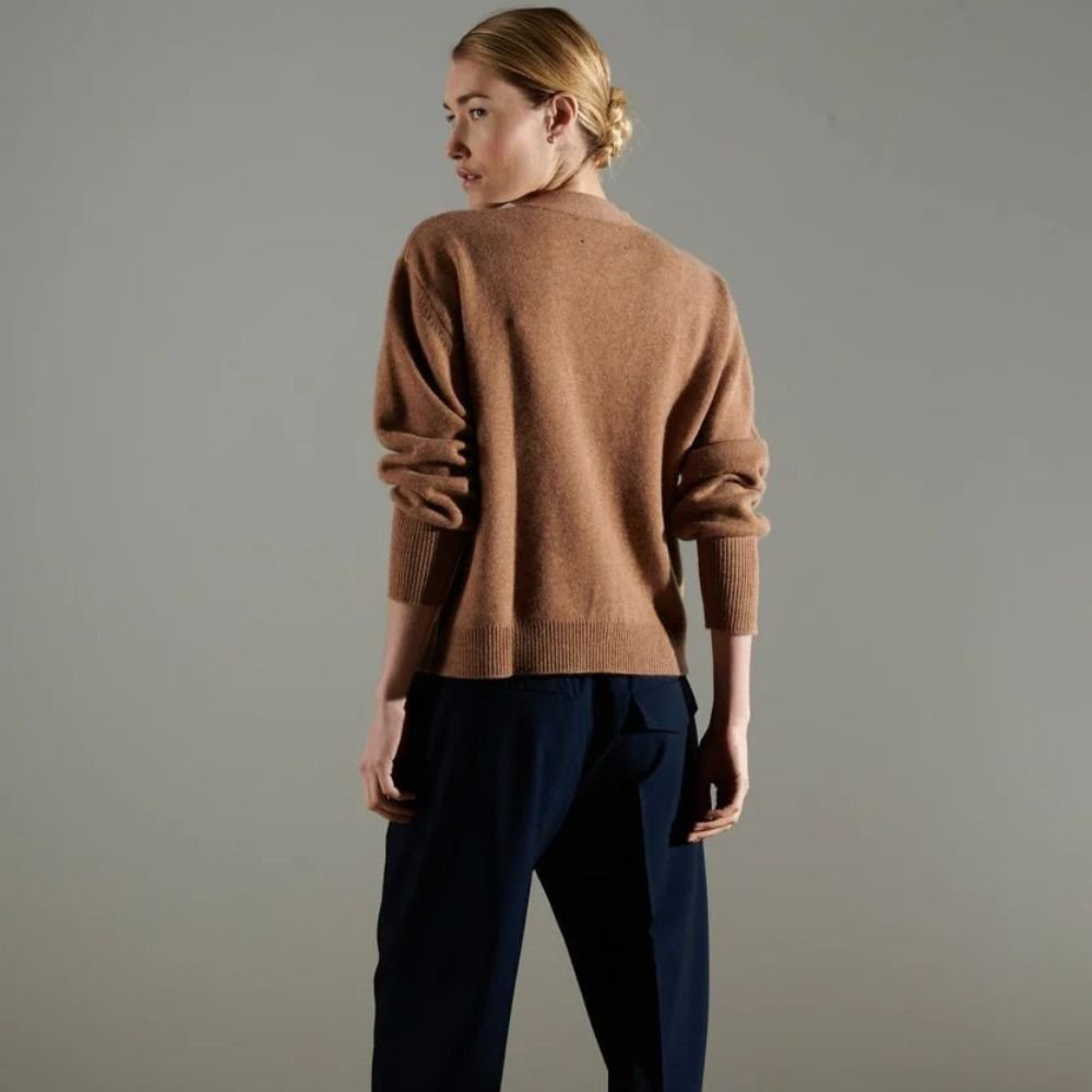 Damen-Cardigan aus 4-fädigem Kaschmir in Camel mit V-Ausschnitt – NAMI 1