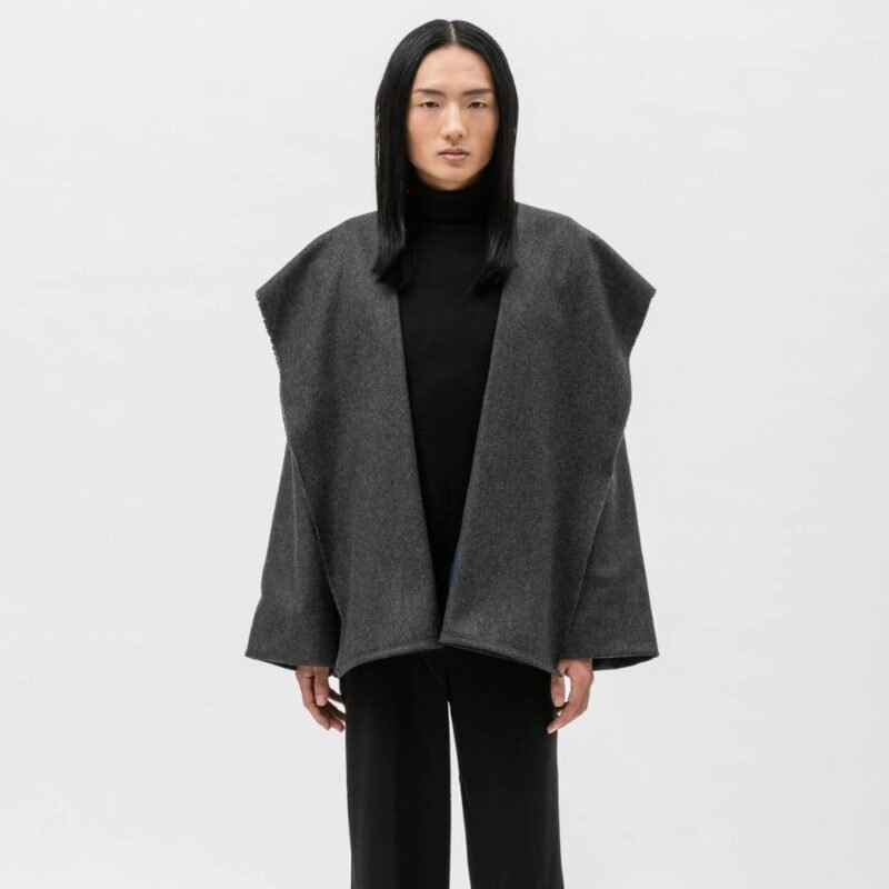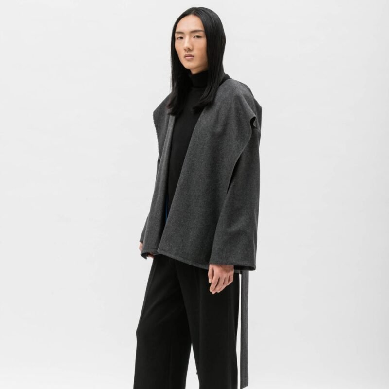 70% GRS certified Re.VerSo wool, 30% polyamide Lining 100% cupro. 580 gr/ml
