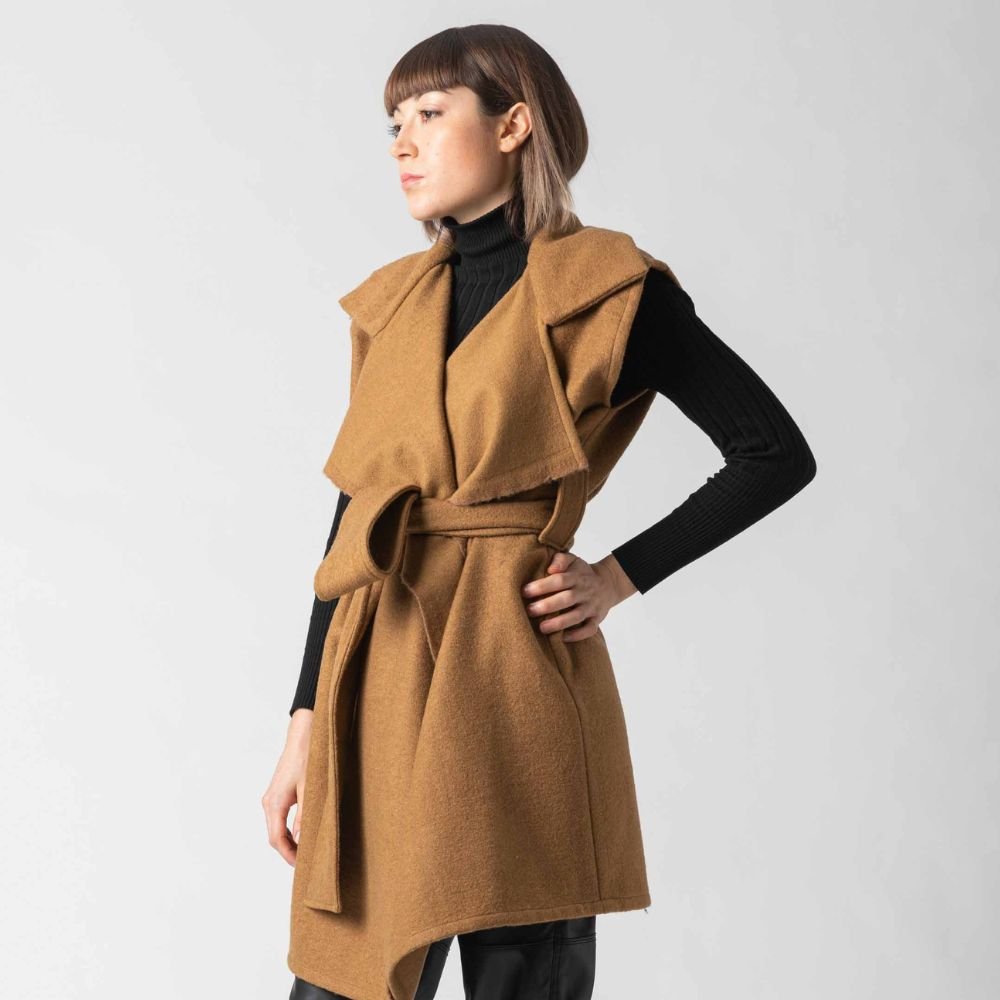 This midi vest in blended wool is a timeless and gender-neutral piece. Made in Italy with high quality materials it’s developed making use of the distinctive zero-waste technique, speciality of ZEROBARRACENTO.