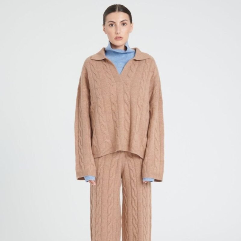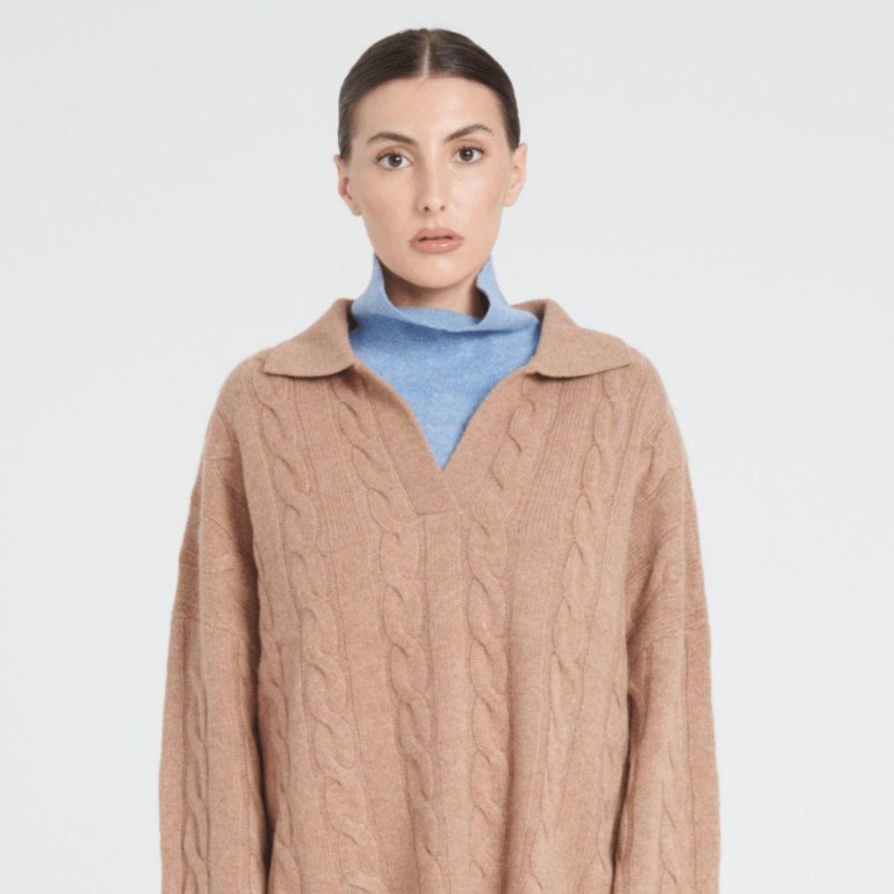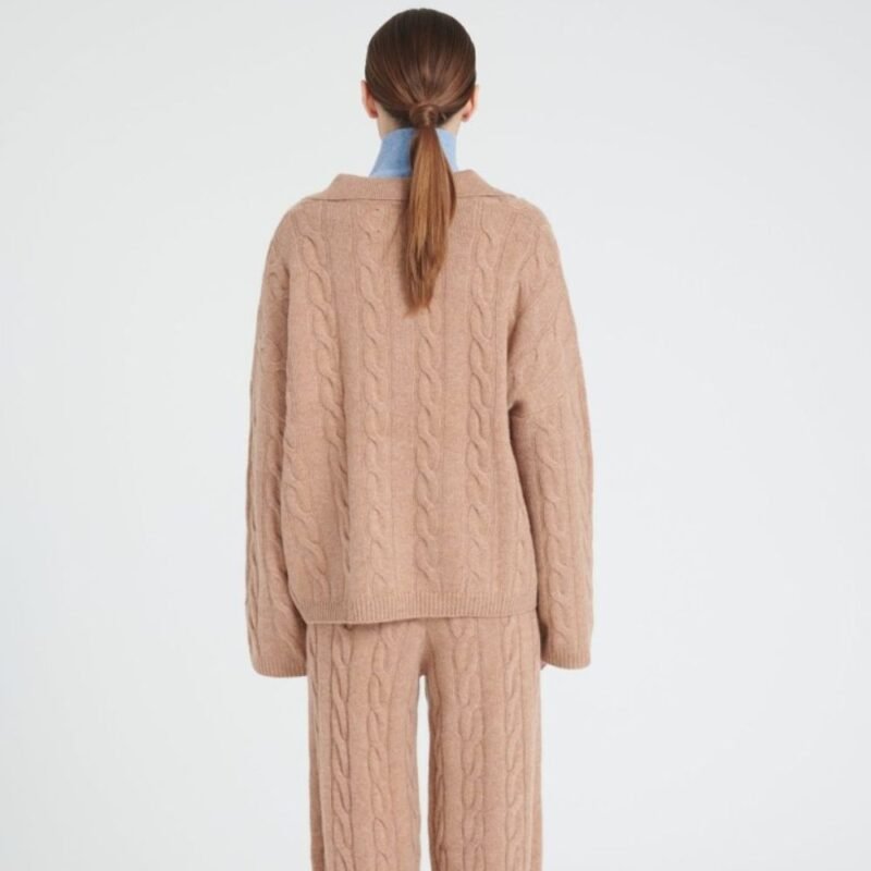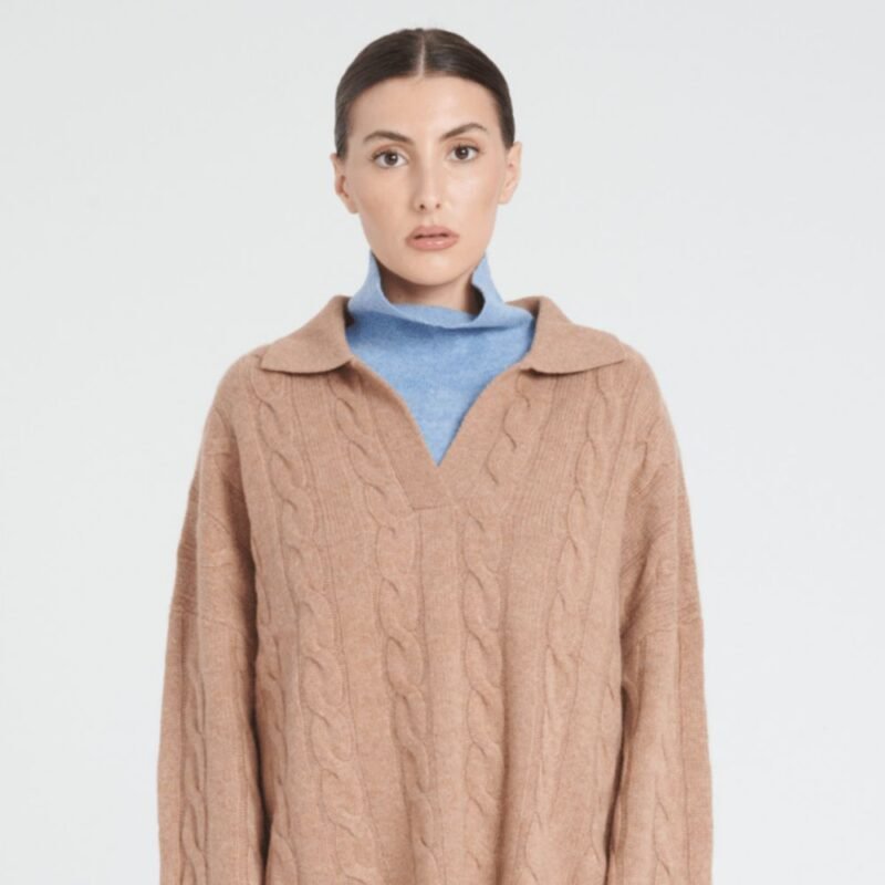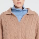 Women’s 6-ply camel cashmere long-sleeved polo shirt – ZAYA 5