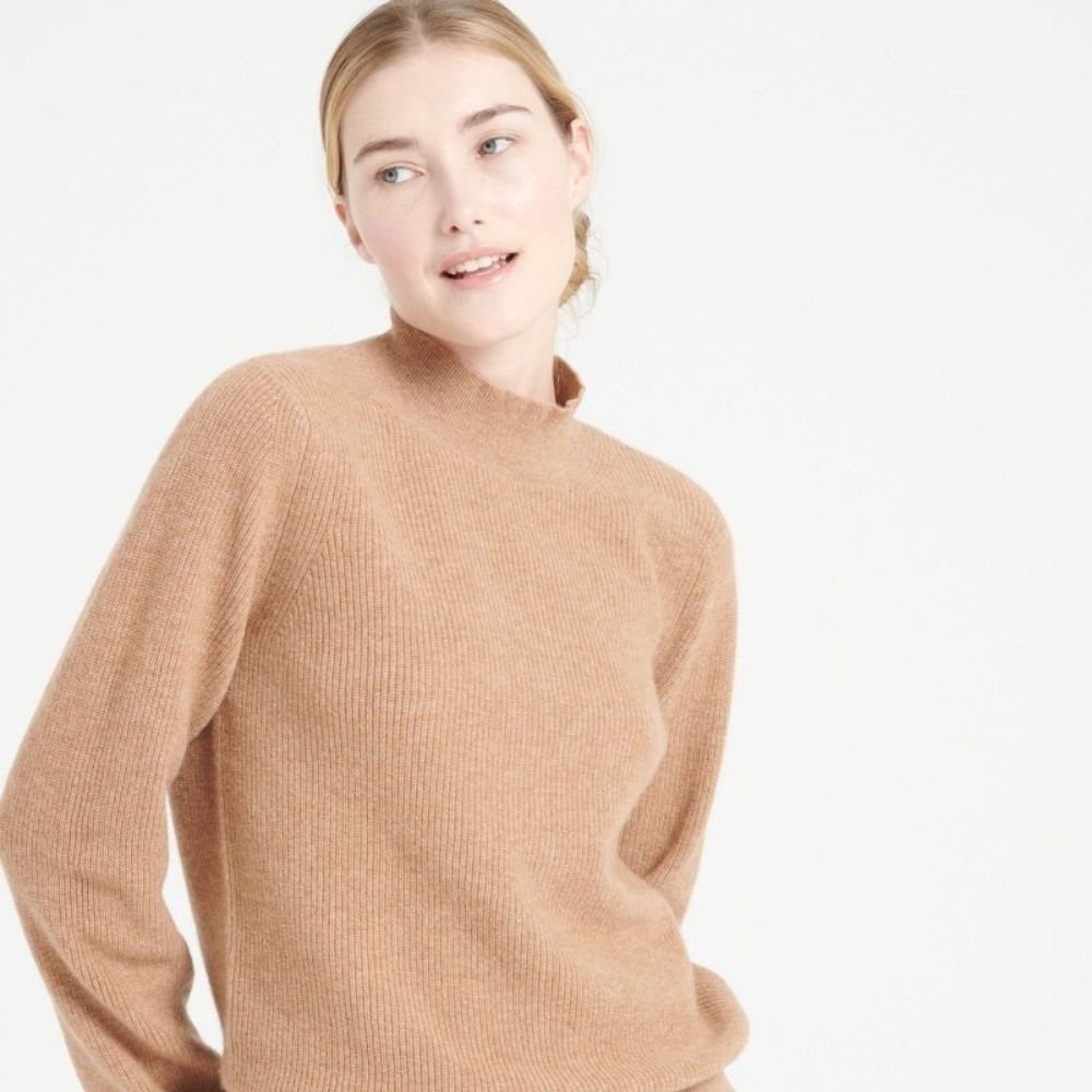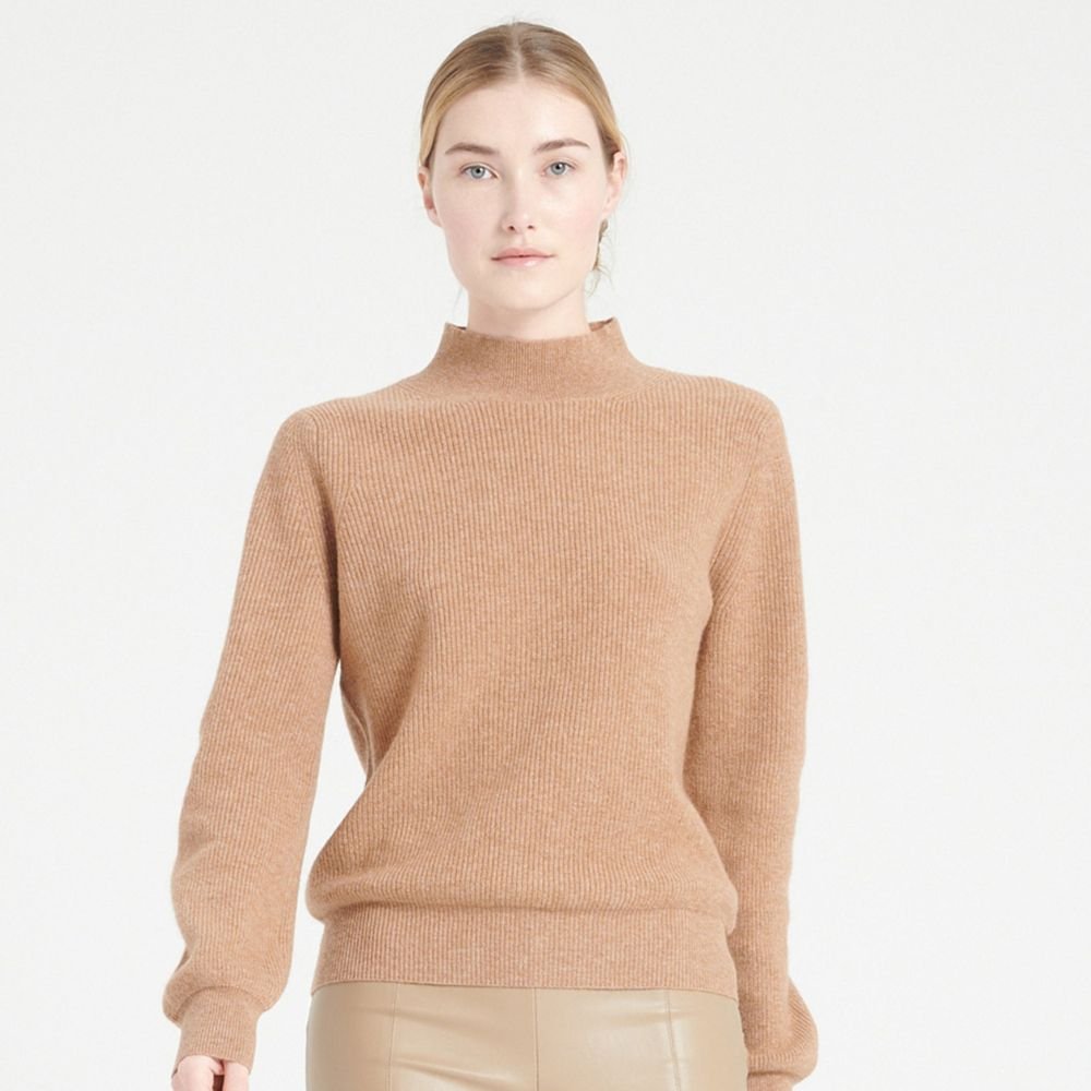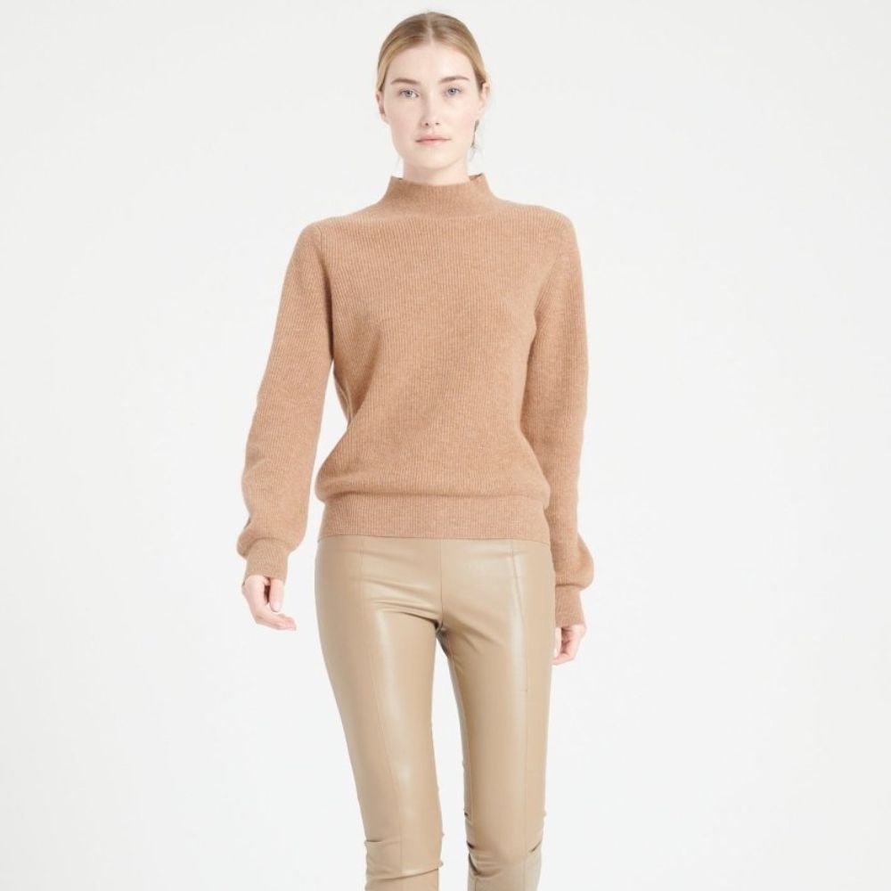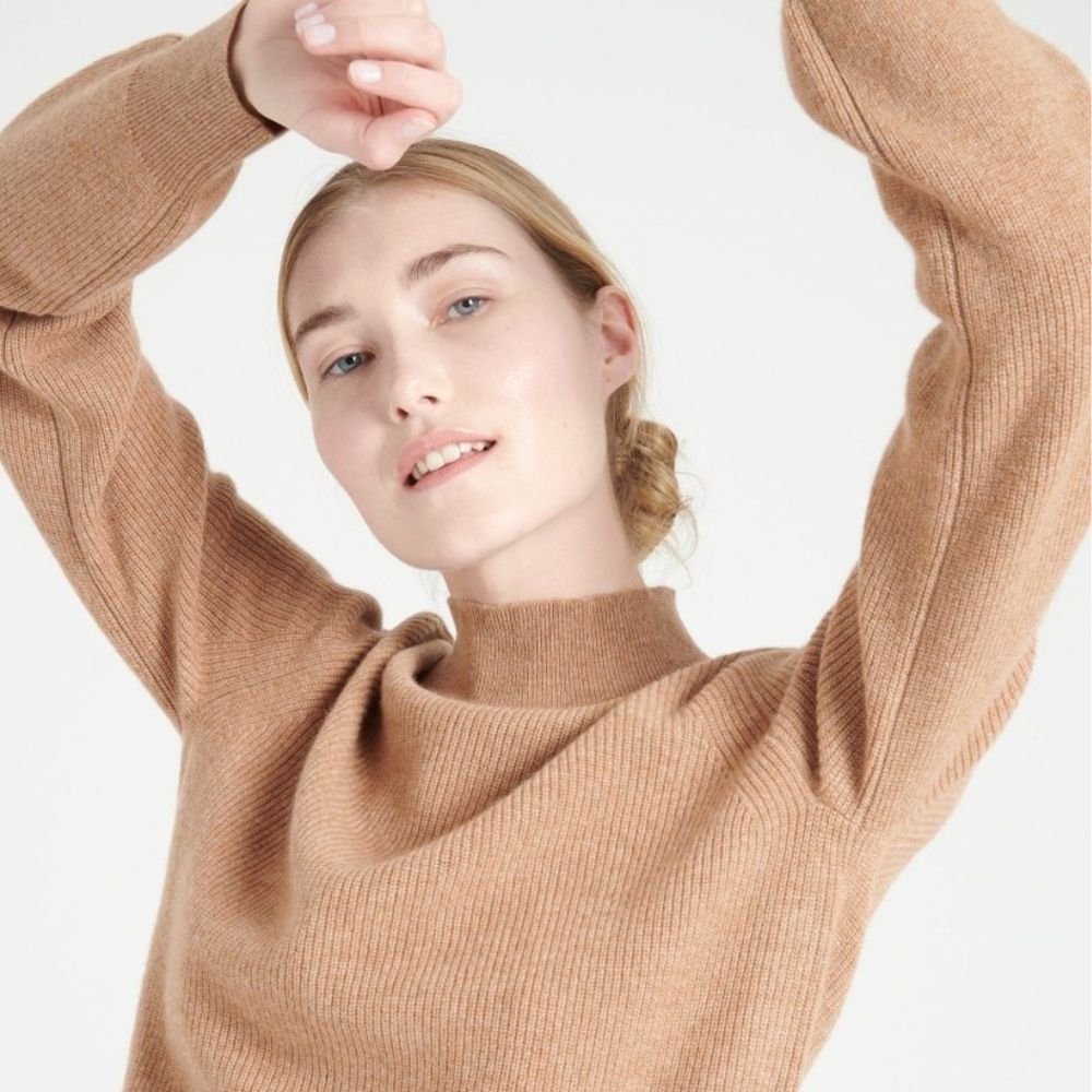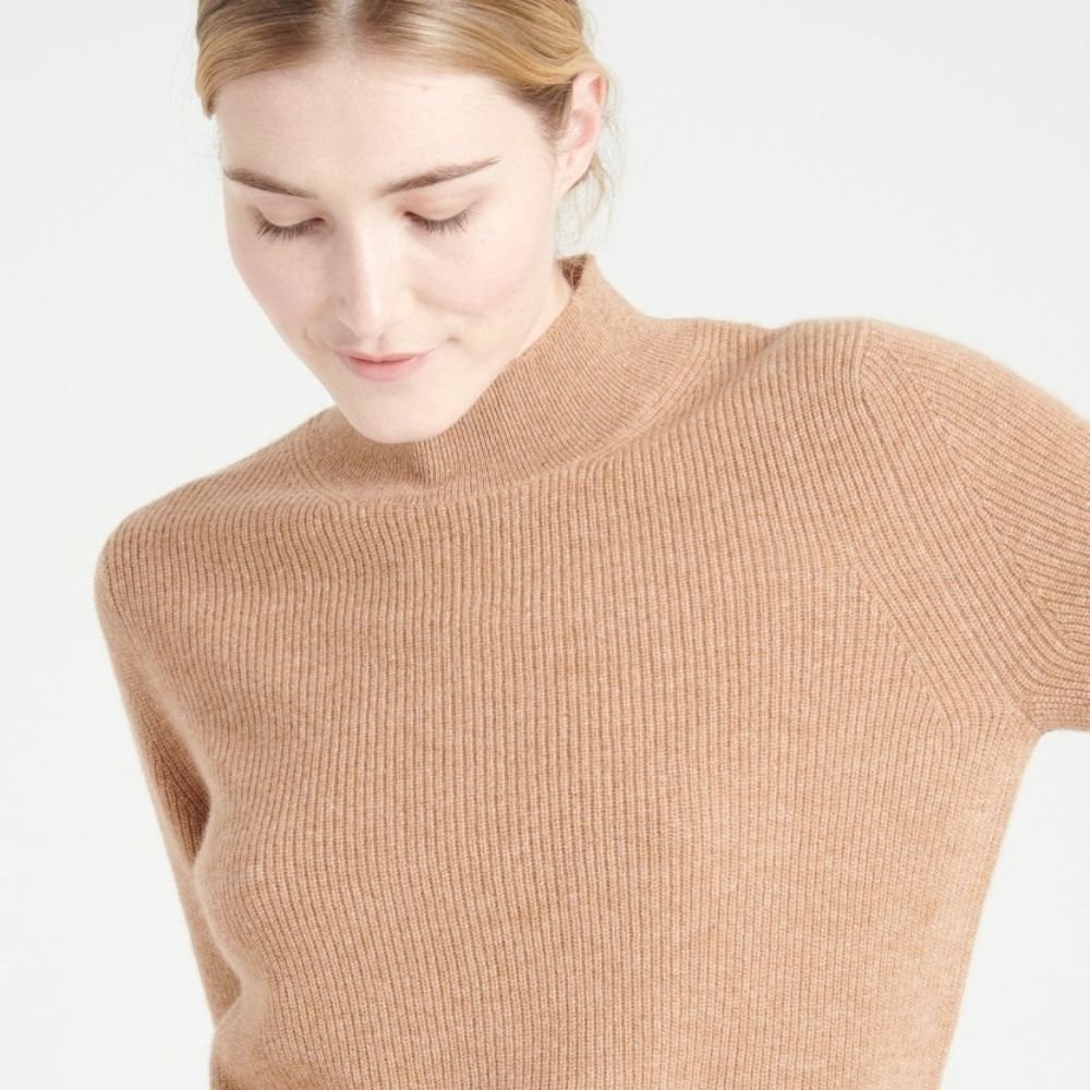 Women’s camel cashmere high neck sweater – MIA 1